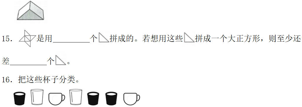 (2)上面的图形按形状分,完成下表。