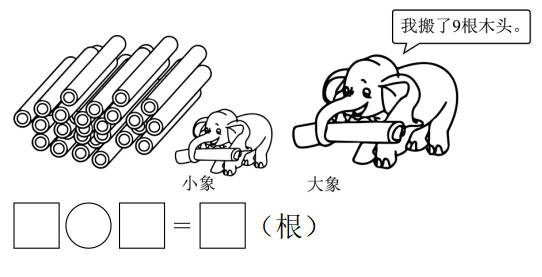 26.小象一共搬了5根木头,小象和大象一共搬了多少根木头?