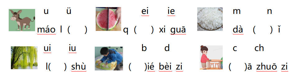 一、按顺序填写每组中(zhōnɡ)缺少的声(shēnɡ)母或韵母。(5分)