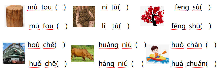 五、看图,在正(zhènɡ)确的音节词后面打“√”。(6分)