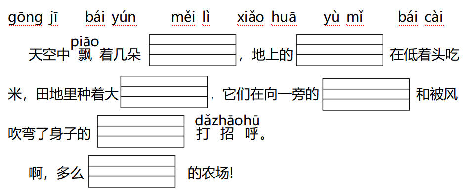 十三、看美丽农(nónɡ)场(chǎnɡ)图,选择音节词把句子补充(chōnɡ)完整(zhěnɡ)。(6分)