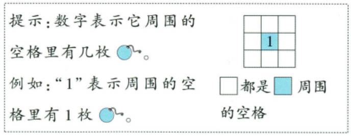 右面的“雷区”中,空格里可能有,请根据格子里的数字,找出的位置。(画表示)
