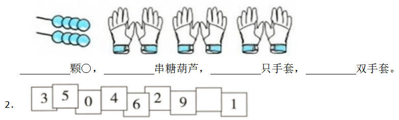 【解析】【解答】解:8颗◯,2串糖葫芦,6只手套,3双手套。
