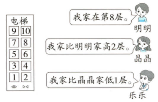 【分析】晶晶家的楼层数=明明家的楼层数+2层;乐乐家的楼层数=晶晶家的楼层数-层,电梯上最大的楼层数字是10,则这栋楼共10层。