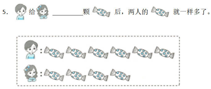【分析】小男孩比小女孩多2颗糖,把这2颗糖的一半也就是1颗给小女孩,两人的糖就一样多了。