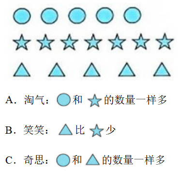 【分析】分别数出三种图形数量的多少,然后再比较大小。