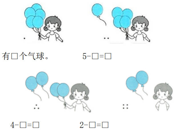 【分析】有有5个气球;第一次飞走了1个,还剩下的气球的个数=原来的个数-飞走的个数=5-1=4个,又飞走了2个,还剩下4-2=2个,最后又飞走了2个,还剩下2-2=0个。