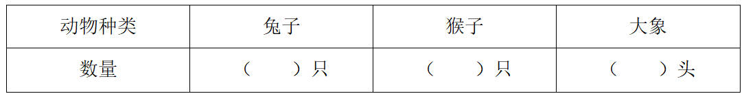 1. 把兔子、猴子、大象按动物种类分类,兔子有7只,猴子有5只,大象有2头,完成分类统计表: