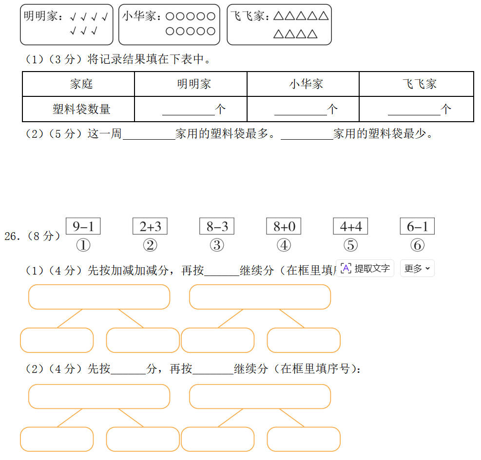 (2)先按得数分,再按加减继续分