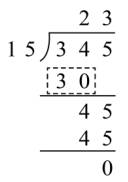 4.一本故事书有345页,小玲每天看15页。下图的除法竖式中,虚线框内的部分表示她(    )天看的页数。