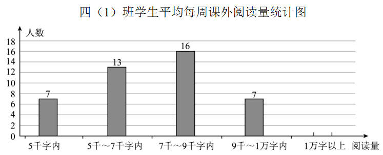 25.教育部印发的《义务教育语文课程标准(2022年版)》中规定,第二学段(3-4年级)学生课外阅读总量不少于40万字。若将阅读任务平均分配到每一周,假设一学年按40周计算,平均每周阅读量约为1万字。下面是四(1)班学生平均每周阅读量统计表。