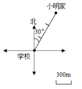 【详解】小明家在学校的北偏东30°的方向上,相距900米。