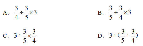 16.(本题2分)一台脱粒机小时脱粒吨,脱3吨需要多少小时?下面列式错误的是(  )。