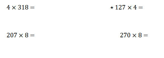 30×5= | 18×5= | 102×3= | 2100×4= |