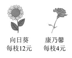 26.圆圆的奶奶过生日,圆圆和妈妈一起选了16枝康乃馨和1枝向日葵送给奶奶。买这些花一共需要多少元?(4分)