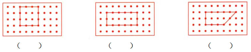4.三名同学在钉子板上围出了三块大小不同的“草地”,画一画、分一分,选出最大的“草地”,在相应的括号里打“√”。