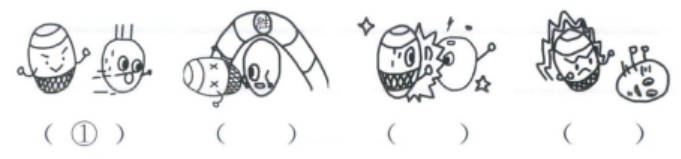 1.读了选文一,小语给精彩的斗陀螺比赛配了插画,结合选文内容给插画排排顺序。(3分)