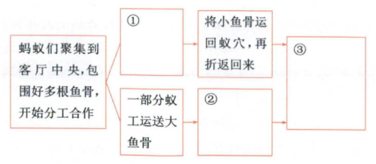 1.[思维导图]细读短文,用简洁的语言概括蚁工们搬运鱼骨的过程。(4分)