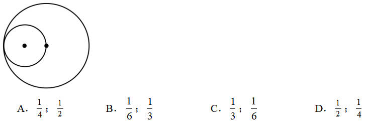 【分析】如图所示,小圆的直径等于大圆的半径,设小圆半径是1,则大圆半径是2,根据C=2πr,S=πr2计算周长和面积,再依据求A是B的几分之几用A÷B解答。