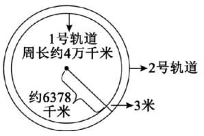 6.科幻片中,要在地球赤道附近修建两条轨道(如图所示)。1号轨道贴近赤道地面,整体呈圆形,2号轨道始终与1号轨道保持3米距离,且2号轨道、1号轨道与赤道所在地球截面在同一平面。为此同学们展开了“2号轨道比1号轨道长多少米”的讨论。你认为说得对的是( )。