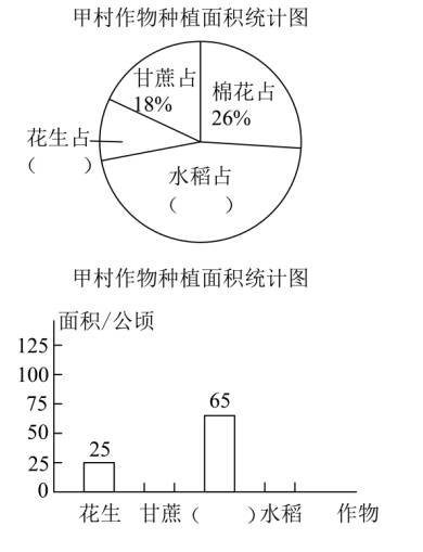 23.甲村有耕地250公顷,根据下面的数据,将两幅统计图补充完整。