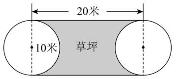 【分析】观察可知,广场的周长等于两个圆周长的一半(即一个圆的周长)加上长方形的两条长,根据圆的周长公式,代入数据计算即可得广场的周长;草坪的面积等于长方形的面积减两个半圆的面积(即一个圆的面积),根据圆的面积公式,代入数据计算即可。