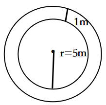 (图提示:一个圆形花坛,半径5m,在它周围修宽1m的小路,求小路面积)