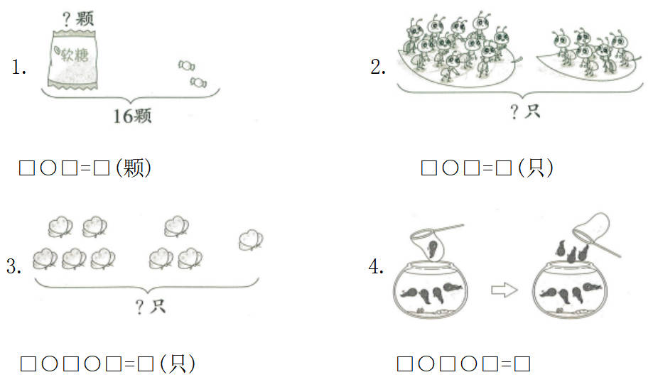 9+□=15 3+□=11 11+□= 19 2+□= 12
