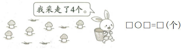 1.地上原来有10个蘑菇,小兔采走了( )个蘑菇,还剩( )个蘑菇。