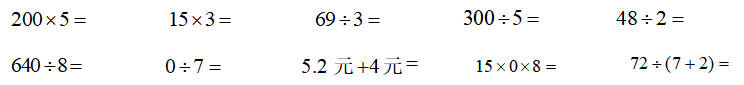 7.(本题1分)一副乒乓球拍的价格是68元,体育老师买了4副,大约需要花费( )元。