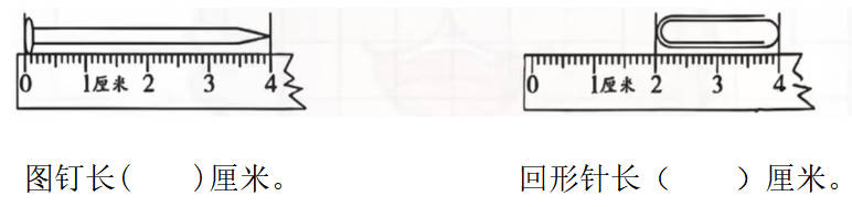 图钉长( 4 )厘米。 回形针长( 2 )厘米。