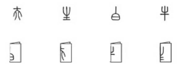 上面的图案分别是从哪张纸上剪下来的?连一连。
