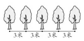 2、学校操场有一排杨树,每两棵杨树之间相距3米,从第1棵到第5棵杨树之间相距多少米?(4分)
