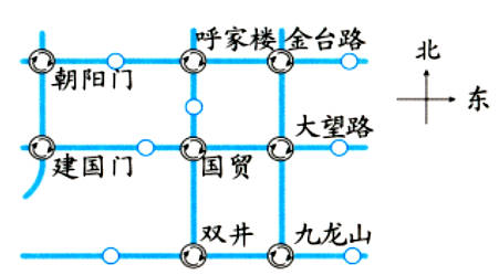 2.(4分)下图是北京地铁的部分线路图。朝阳门站在呼家楼站的______面,在建国门站的______面。国贸站的东面是______站,大望路站的南面是______站。