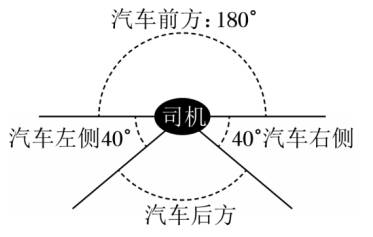 17.(1分)汽车有一双360°的“眼睛”。如图,司机通过前方能观察到的最大角度约是180°;通过左方和右方,司机分别能观察到的最大角度约是40°,通过车内后视镜,司机能观察到的角度大约为______°。