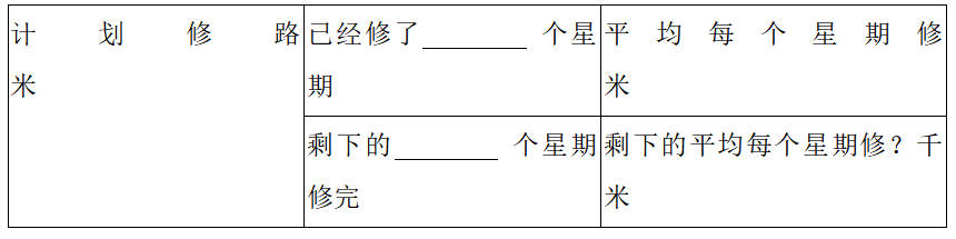 25.(6分)计划修路8000米,已经修了5个星期,平均每个星期修1200米,剩下的打算用2个星期修完,剩下的平均每个星期修多少千米?(先整理题中的条件,再解答)