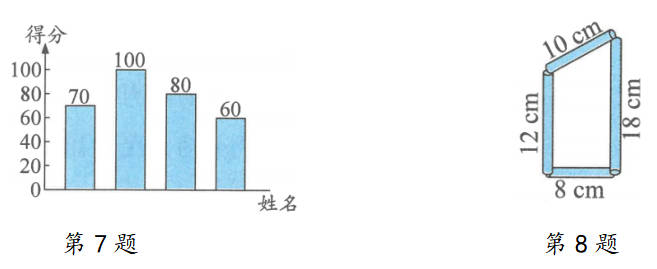 8.如图,用4根小棒围成一个直角梯形,这个梯形的高是( )厘米,从这4根小