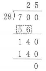 2.一个中国结的单价是28元,700元能买多少个这样的中国结?明明用竖式进行了计算。下面竖式中圈出的部分表示( )。
