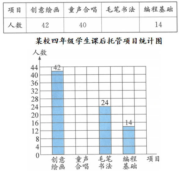 3.(1)表格里填24,统计图中童声合唱的人数为40。