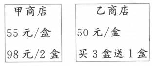 (1)如果在甲商店购买,最多能买几盒?还剩多少钱?(5分)