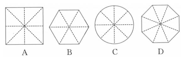 1.下面是四幅刺绣作品中的图案,图中没有45°角的是( )。(4分)