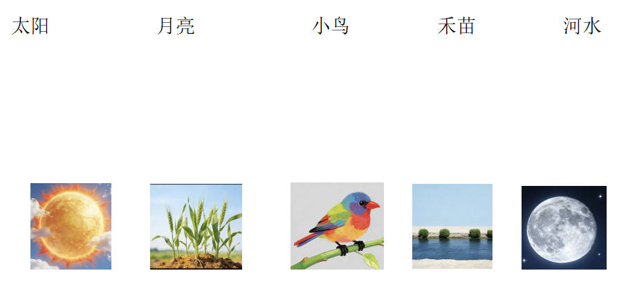(解析:考查图文对应,贴合一年级“识字结合图画”的学习特点,直观易懂。)