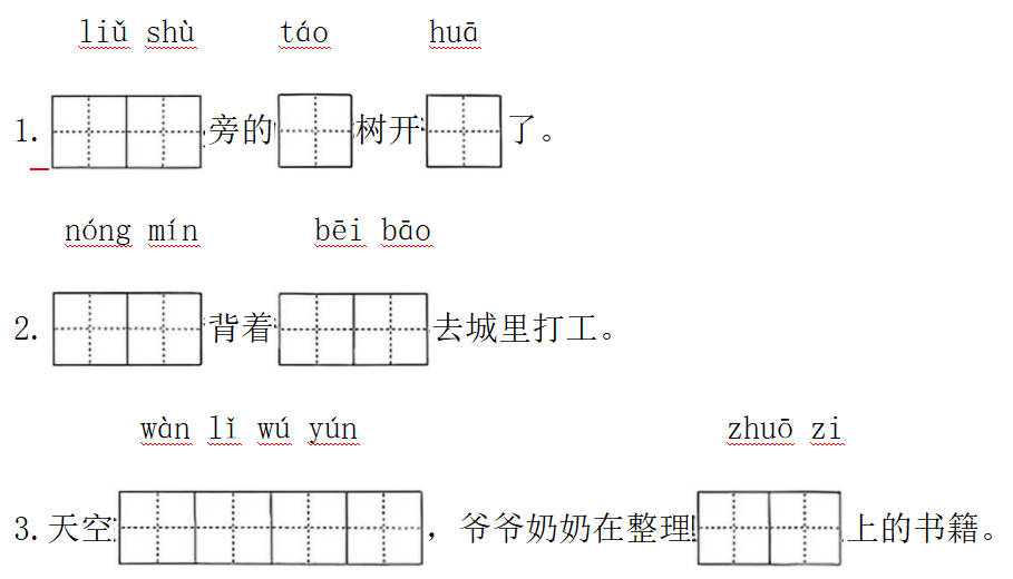 1.春天来了,( ),几只小鸟在蓝天上快乐地飞翔。