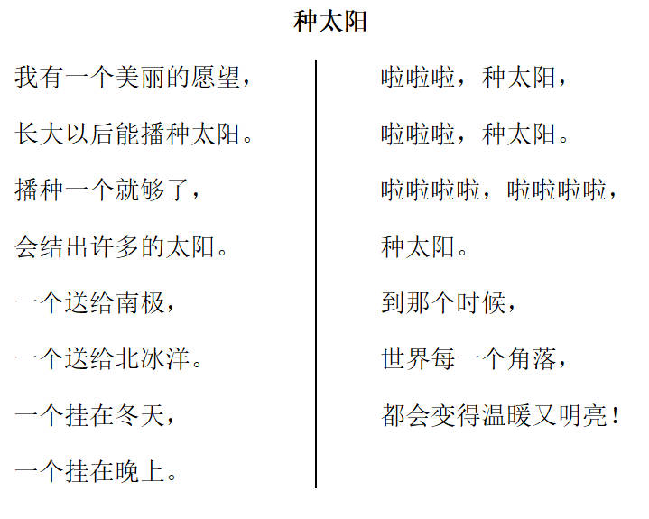 “我”的愿望是种( )。会结出( )的太阳。然后分别送给( )、( ),分别挂在( )、( )。