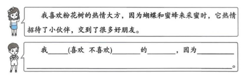 ⑥白花树看看粉花树,看看自己,伤心地哭了。粉花树有了许多朋友,又收获了许多香甜的果实。 (作者童言,节选自《学习强国》,有删改)