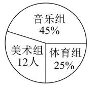 【分析】把参加课后服务兴趣小组总人数看作单位“1”,用1减去参加音乐组人数占总人数的百分比,减去参加体育组人数占总人数的百分比,求出参加美术组人数占总人数的百分比;