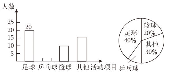 11.(本题2分)张亮同学统计了六(1)班同学大课间的活动项目,并绘制了下面两幅统计图。从图中分析可得,大课间参加乒乓球活动的同学有( )人。