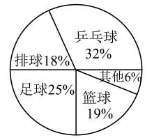 13.(本题2分)某小学六年级学生关于“最受欢迎的球类运动”所占百分比如图所示,那么乒乓球与排球占比相差( )。