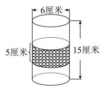 25.(本题5分)往一个底面直径是20cm、高是15cm的圆柱形容器中倒入一定量的水,使水面距离容器口2cm。现把一个圆锥放入容器中,有部分水溢出,当把圆锥取出后,水面下降了5cm。求溢出的水的体积。(容器壁的厚度忽略不计)