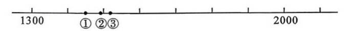 2.下面三个点,最可能表示1448的是( )。